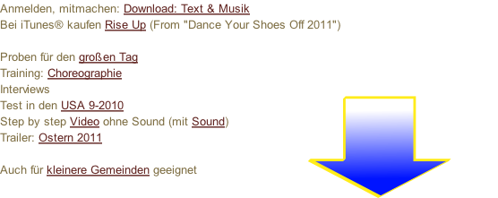 Im Internet findest da alles dazu: Video für Choreographie, Text. Noten und Playback, alles kostenlos! Dieses Mal kommt es nicht aus den USA :-)