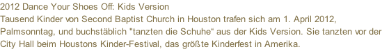 2012-04 Dieser Tanz fand am 19. Mai 2012 vor dem Bundeshaus in Bern statt. Viele Christen aus der ganzen Schweiz haben diesen Tanz zuhause oder in kleinen Gruppen geübt und kamen an diesem Tag zusammen, um ihn das erste Mal gemeinsam zu tanzen und hier in der Hauptstadt der Schweiz vor dem Bundeshaus Jesus zu feiern.