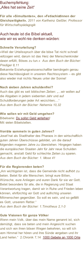 Nachdenkenswert ist, dass Deutschland mit die höchste Depressionsselbstmordrate der Welt hat, während in Schwarz-Afrika Selbstmorde und depressive Erkrankungen praktisch unbekannt sind (wie damals im Volk Israel).