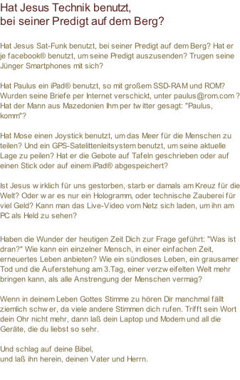 Anrufbeantworter für Telefonkurzpredigten (Beispiel: 01805 - 64 77 46)
